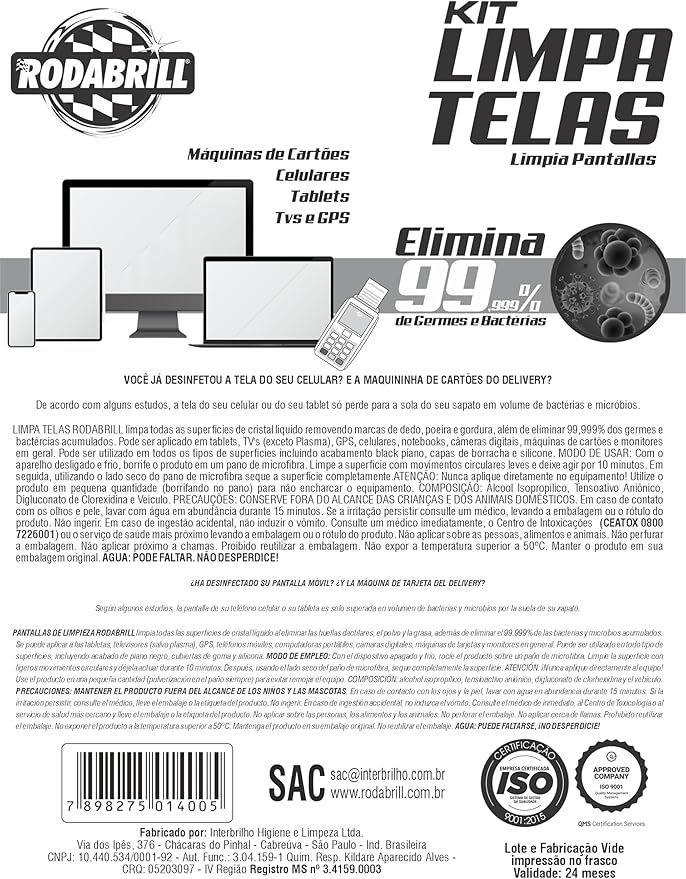 - Limpa e desengordura; elimina 99,99% das bactérias